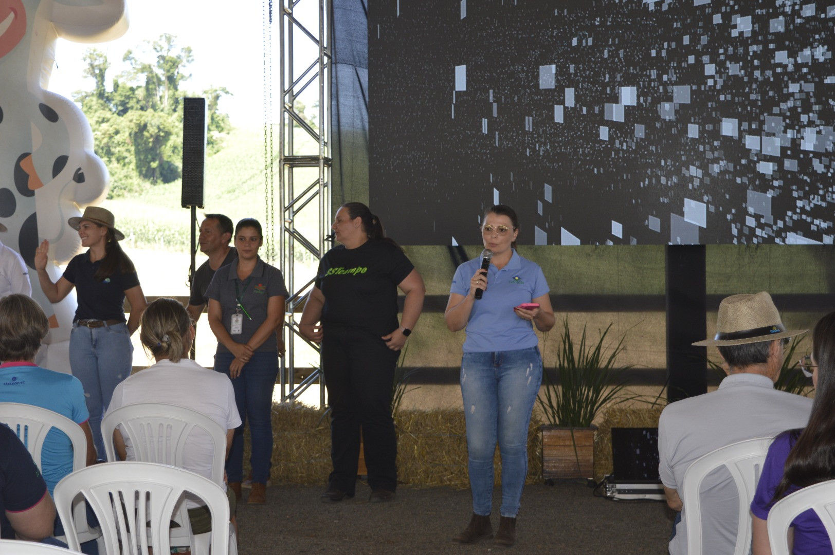 Na tarde do dia 3, a programação contou com o Dia Delas, um momento dedicado exclusivamente às mulheres do meio rural. A atividade reuniu produtoras, cooperadas e profissionais para uma série de palestras voltadas ao fortalecimento da participação feminina no agronegócio.